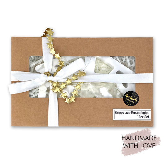 Kleine Krippe aus Keramikgips Weiß/Gold