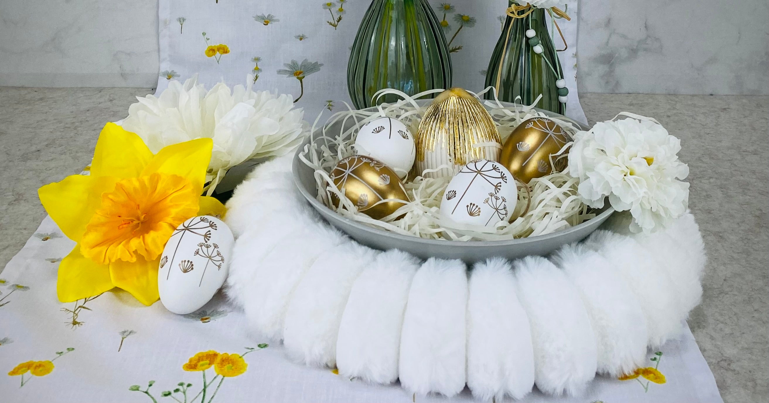 Erdtöne mit Schwarz und Gold Details ergeben ein stimmiges Bild für ein schönes Osterfest.