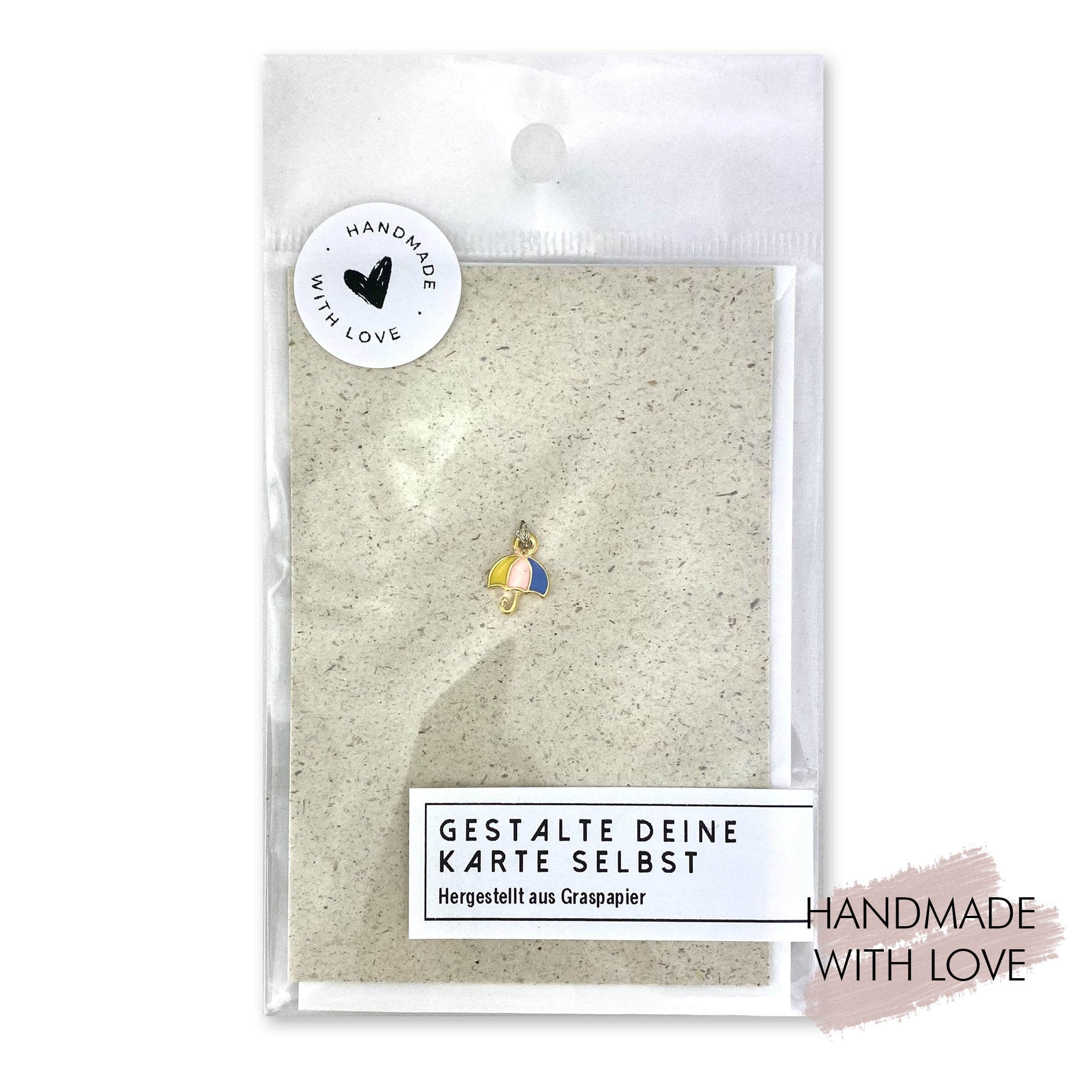 Farben: Natur, Braun Material: Gras, Stroh, Zellstoff, Papier Größe: ca. 7x10,5cm Umschlag ca. 7,5x11cm Inhalt: 1 kleine Postkarte mit Anhänger und 1x Umschlag GA05250398150
