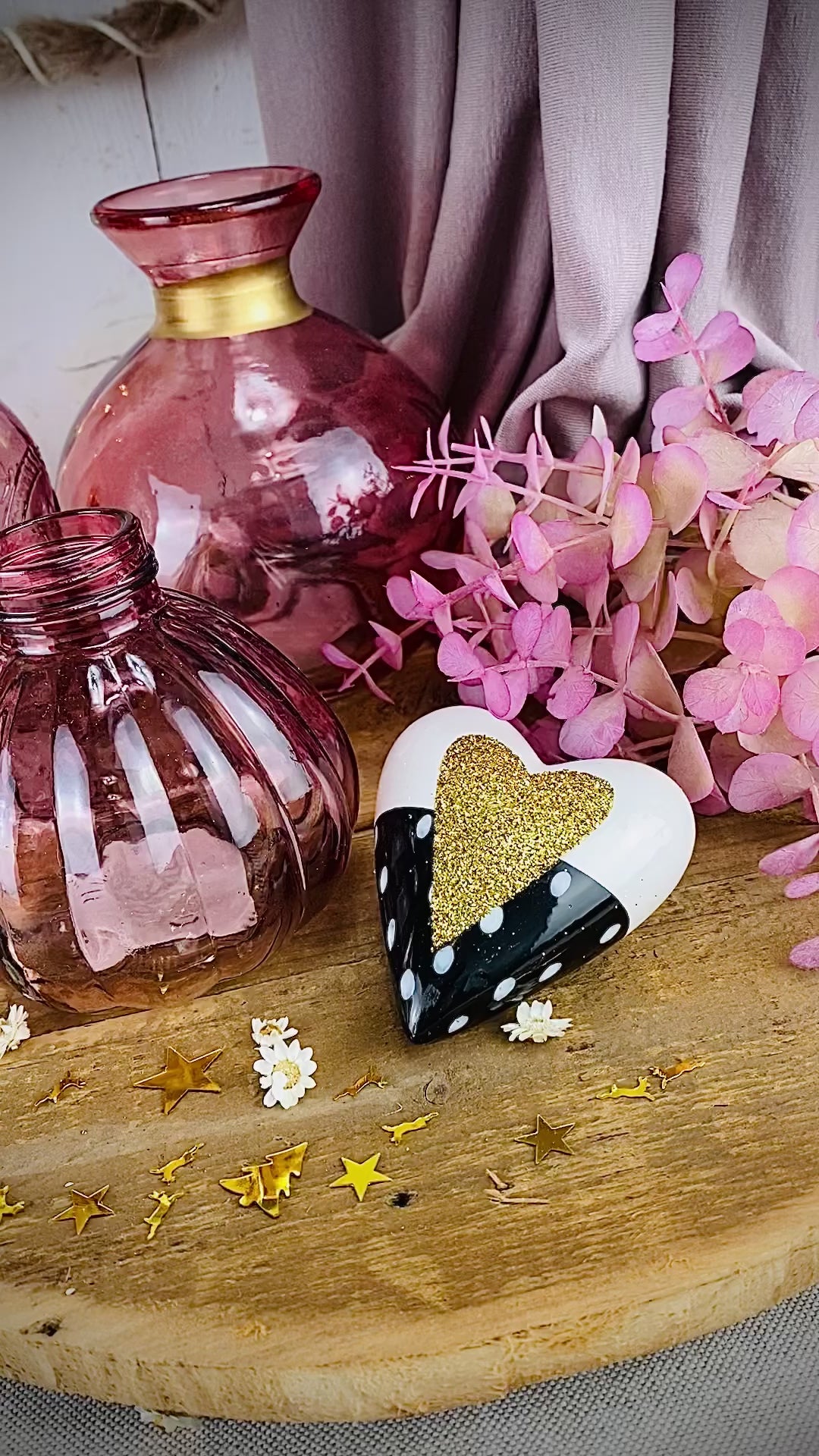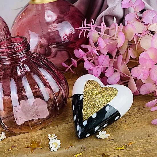 Unser sehr schönes und dekoratives Keramik-Herz sieht sehr schön aus mit seinem goldenen Glitzerherz. Das Herz kann in verschiedenen Dekorationen eingebacht werden, ist aber auch sehr schön zum verschenken an die Lieben! Oder auch toll als keines Mitbringsel für eine liebevolle Einladung!
