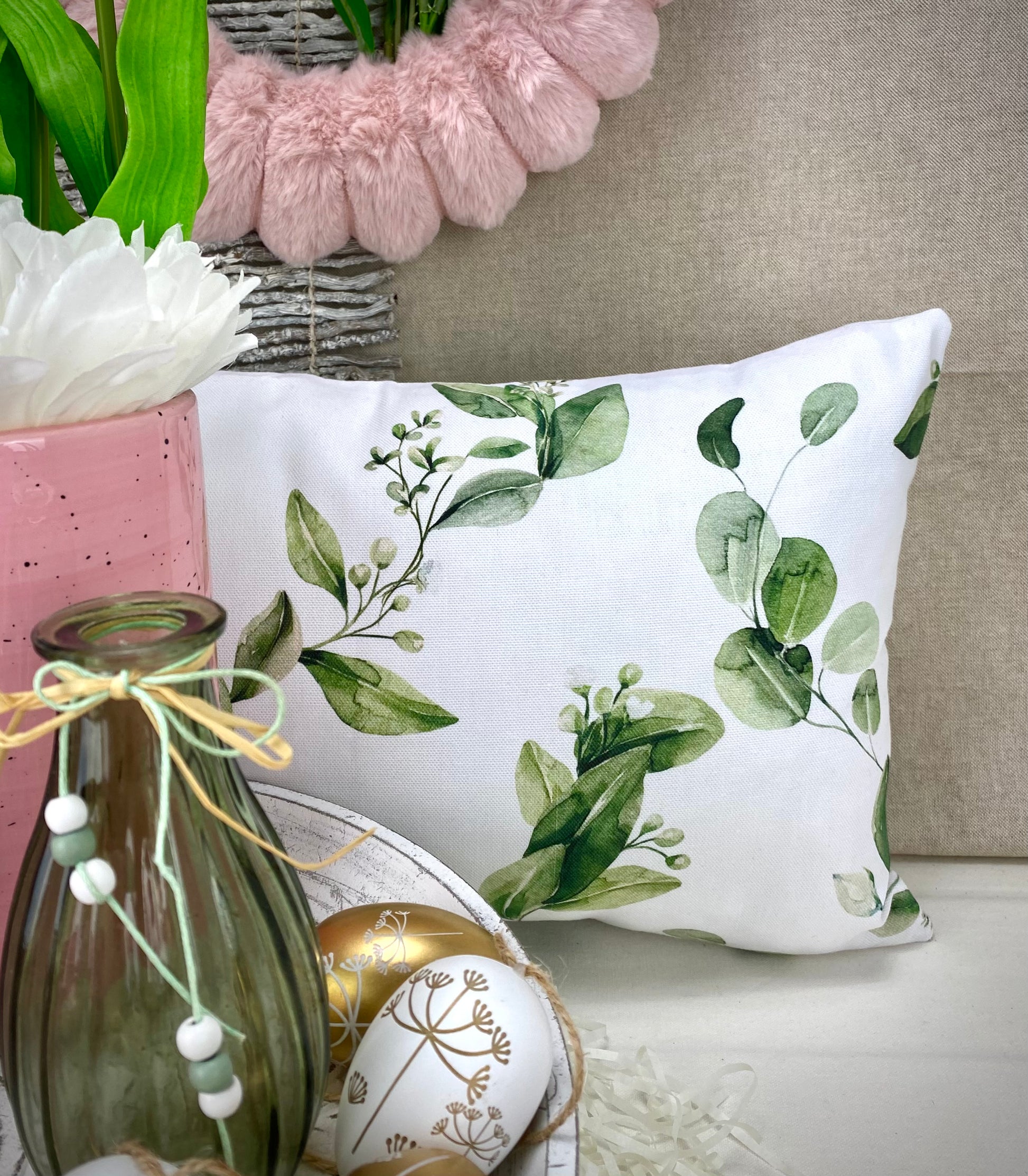 Mit dieser schönen Kissenhülle kannst du dein Zuhause neu dekorieren! Die Hüllen ist aus bedruckter Baumwolle die mit einem Eukalyptus-Blätter Muster bedruckt ist und hat eine Größe von 30x50cm. Die passenden Kissenfüllungen haben wir natürlich auch hier im Shop.
