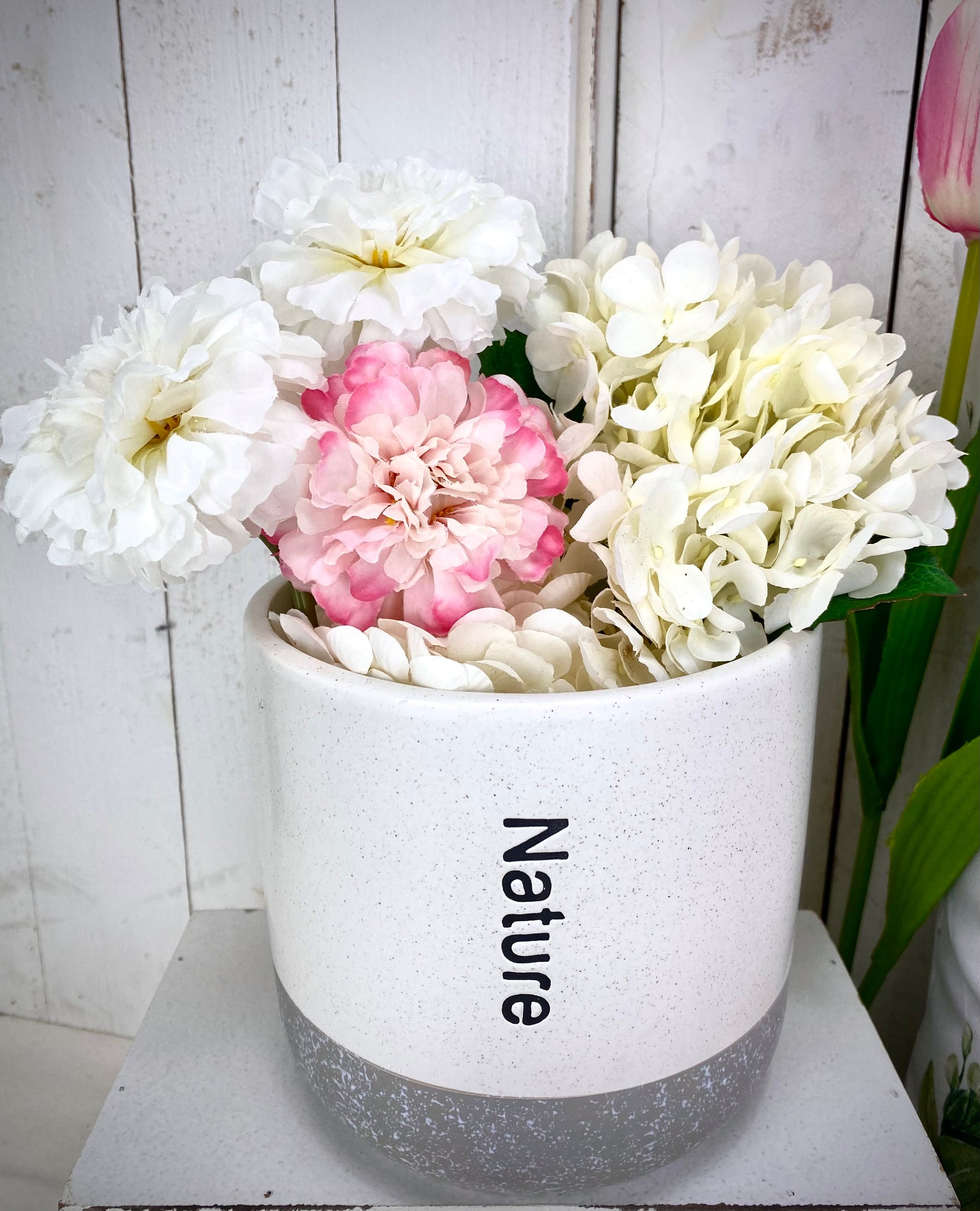 Unsere Übertöpfe sind sehr schlicht gehalten und sind aus Keramik hergestellt. Sie haben auf der Vorderseite einen Nature Schriftzug mit eingebrannt und haben unten eine graue Steinoptik. Dadurch, dass sie sehr einfach und schlicht sind, passen sie in jede Einrichtung und sind bei Naturliebhaber gern gesehen.